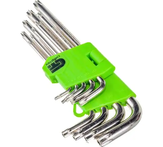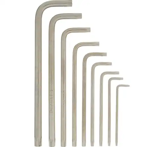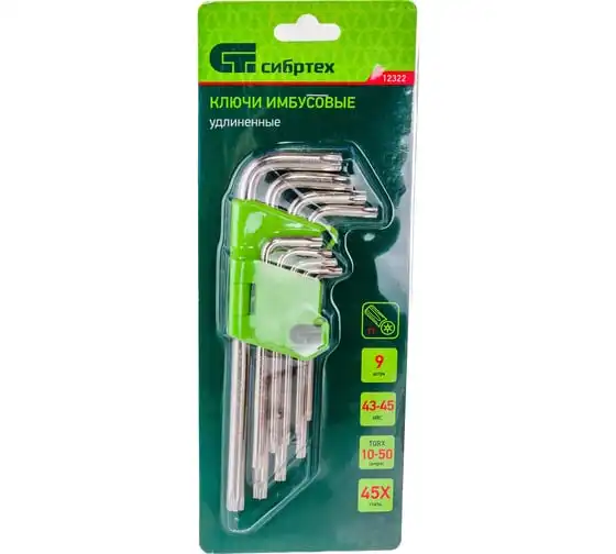 Набор удлиненных имбусовых ключей Tamper-Torx, 9 шт: TT T10-T50, 45Х, закаленные, никель СИБРТЕХ 12322
