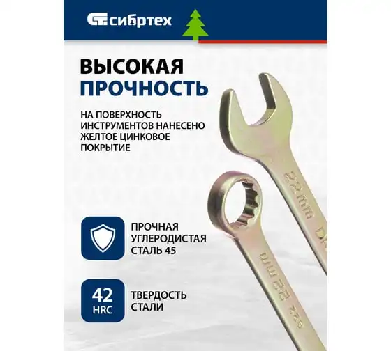 Набор комбинированных ключей СИБРТЕХ 6-32 мм, желтый цинк, 22 шт. 15444