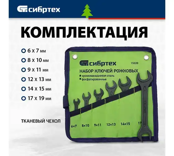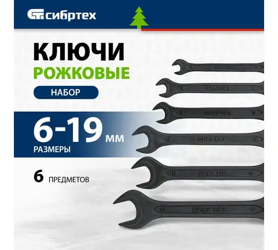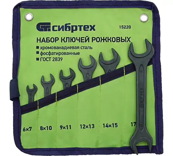 Набор рожковых ключей 6 - 19 мм, 6 шт., CrV, фосфатированные, ГОСТ 2839 СИБРТЕХ 15220