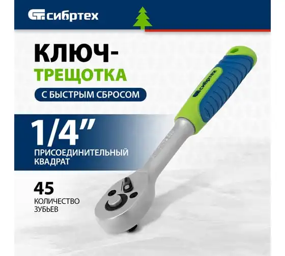 Ключ-трещотка двухкомпонентная рукоятка 1/4" СИБРТЕХ 14007