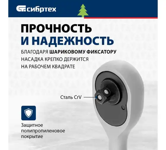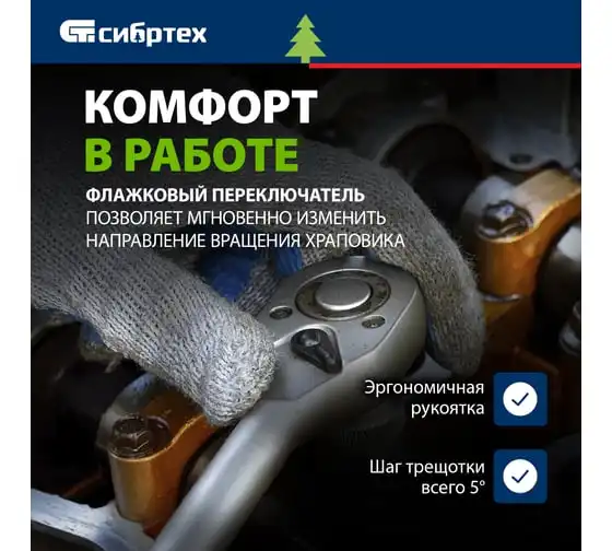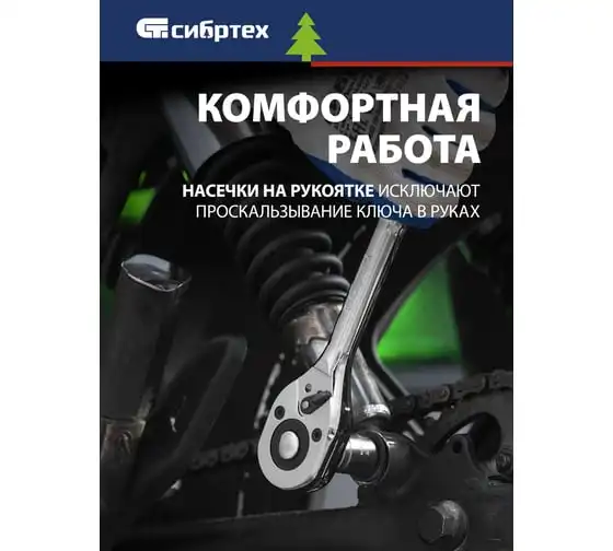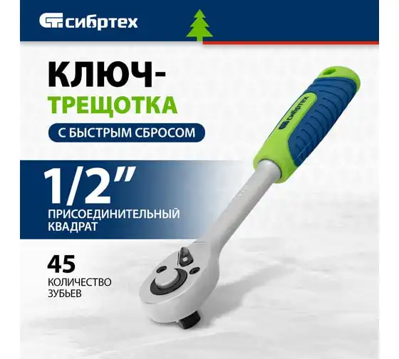 Ключ-трещотка двухкомпонентная рукоятка 1/2" СИБРТЕХ 14009