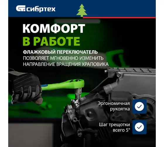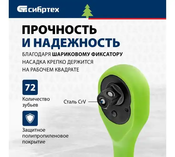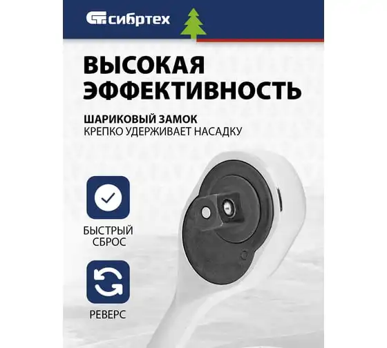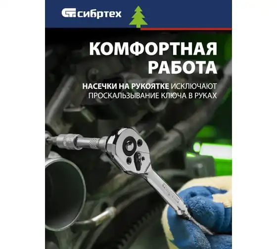 Ключ-трещотка СИБРТЕХ 1/4, 72 зуба, поворотная голова, с быстрым сбросом 14035