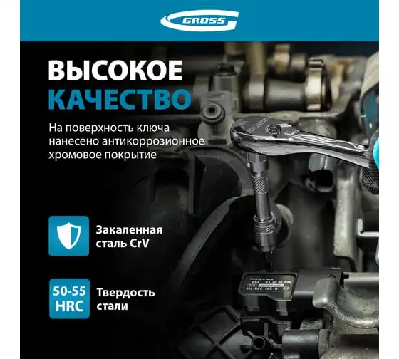 Телескопический трещоточный ключ 1/2" GROSS 14070