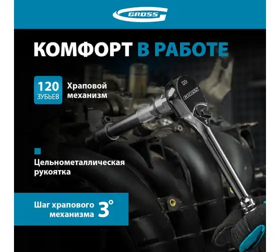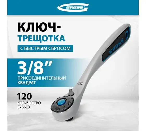 Ключ трещоточный, 120 зубьев 3/8" GROSS 14136