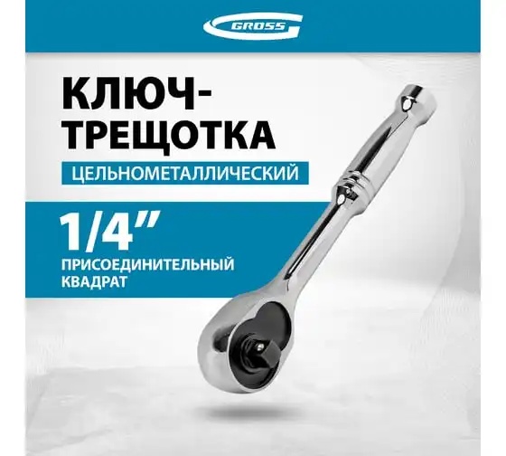 Ключ-трещотка GROSS 1/4", CrV, 120 зубьев, цельнометаллический, хром 14050