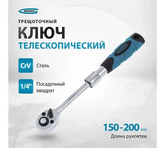 Телескопический трещоточный ключ 1/4" GROSS 14074