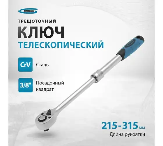 Телескопический трещоточный ключ 3/8" GROSS 14072
