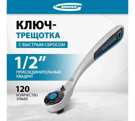 Ключ трещоточный, 120 зубьев 1/2" GROSS 14137