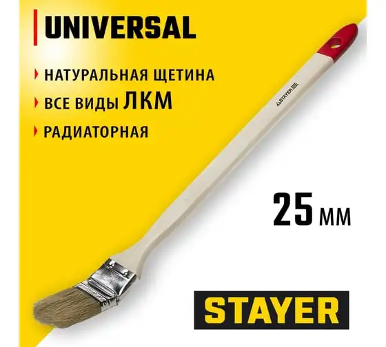 Радиаторная кисть STAYER UNIVERSAL светлая натуральная щетина, деревянная ручка, 25мм, 1" 0111-25