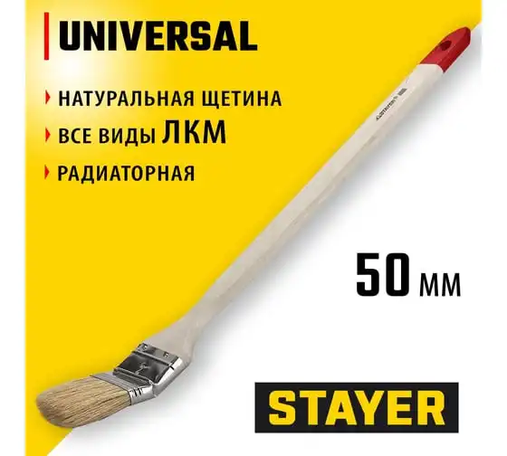 Радиаторная кисть STAYER UNIVERSAL светлая натуральная щетина, деревянная ручка, 50мм, 2" 0111-50