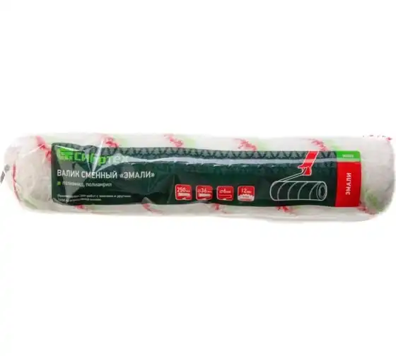 Сменный валик Сибртех Эмали, 250 мм, ворс 12 мм, D-36 мм, D ручки -6 мм, полиамид,полиакрил 80203