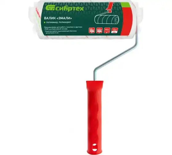 Сибртех Валик Эмали, 180 мм, ворс 12 мм, D - 48 мм, D ручки - 6 мм, полиамид, полиакрил 80196