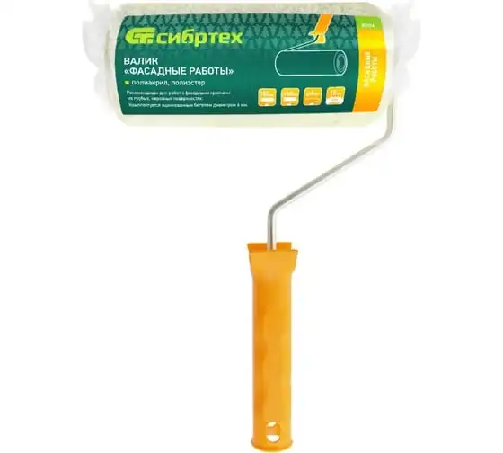 Валик Сибртех Фасадные работы,180мм, ворс 18мм, D 36мм, D ручки - 6 мм, полиакрил, полиэстер 80217