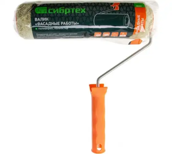 Валик Сибртех Фасадные работы, 250мм, ворс 18мм, D 36мм, D ручки - 6 мм, полиакрил, полиэстер 80225