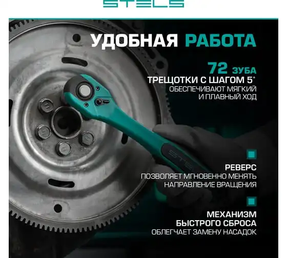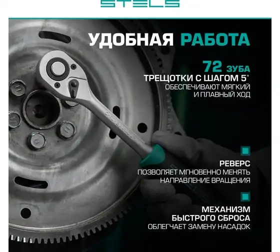 Набор торцевых головок с трещоткой, 1/4"и 3/8", 44 предм, STELS 13575