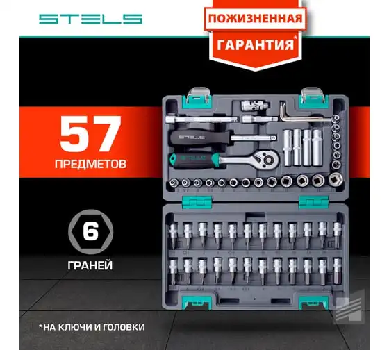 Набор инструментов STELS 1/4 CrV пластиковый кейс 57 предметов 14101