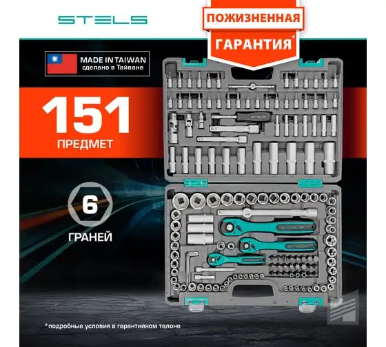 Набор инструмента STELS 1/4", 3/8", 1/2", CrV, S2, усиленный кейс, 151 предмет 14114