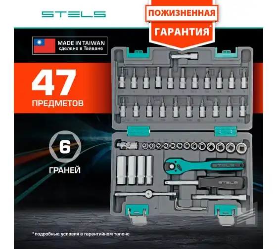 Набор инструмента 1/4", CrV, S2, усиленный кейс, 47шт STELS 14099