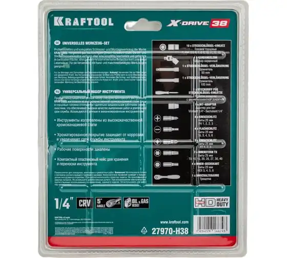 Универсальный набор инструмента KRAFTOOL Universal-38 1/4", 38 предметов 27970-H38