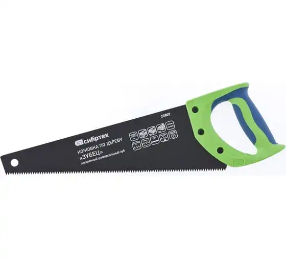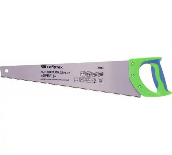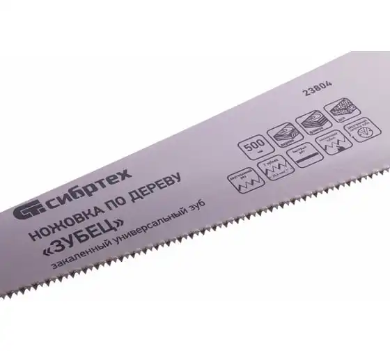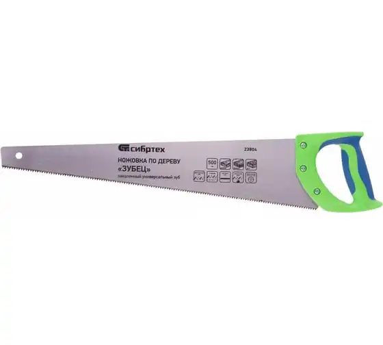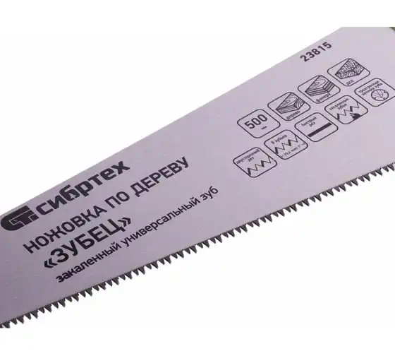 Ножовка по дереву СИБРТЕХ Зубец 500 мм, шаг зуба 7мм, зуб 2D, калёный зуб, 2-х компонентная рукоятка 23818