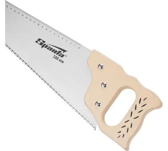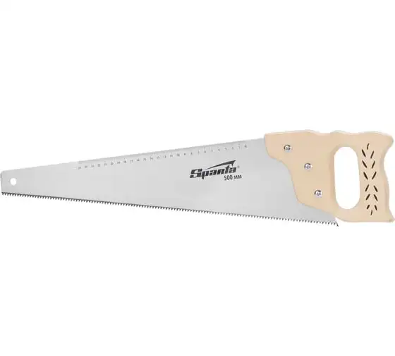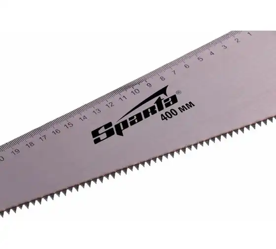 Ножовка по дереву SPARTA 400 мм, 7-8 ТРI, каленый зуб, линейка, деревянная рукоятка 231855