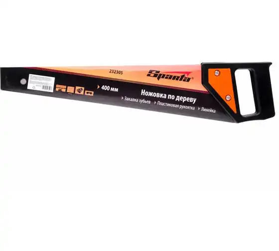 Ножовка SPARTA по дереву,400 мм,5-6 TPI, каленый зуб, линейка, пластиковая рукоятка// 232305
