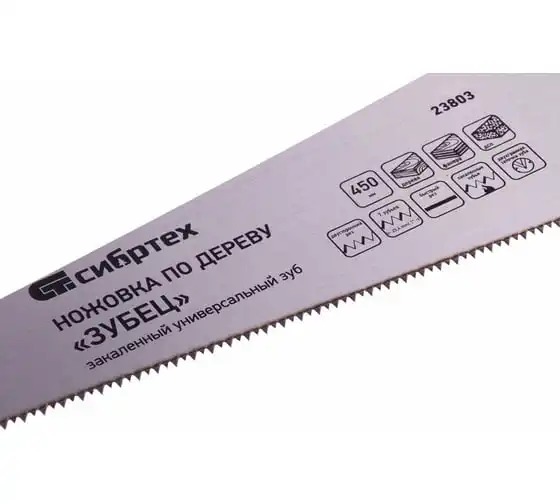 Ножовка по дереву СИБРТЕХ "Зубец",450 мм,7-8 TPI,зуб 2D,калёный зуб,2-х компонентная рукоятка// 23803
