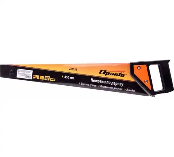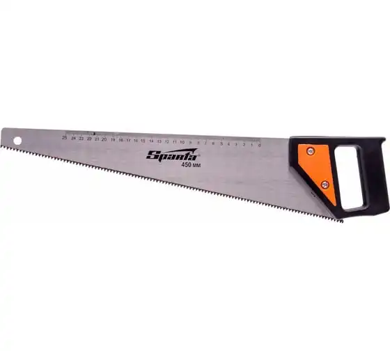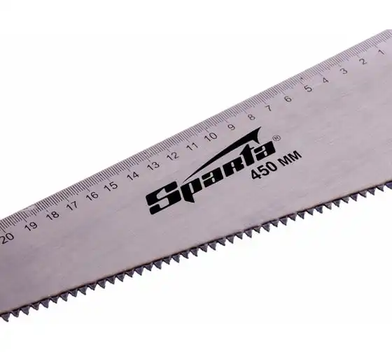Ножовка по дереву SPARTA 450 мм, 5-6 TPI, каленый зуб, линейка, пластиковая рукоятка 232335