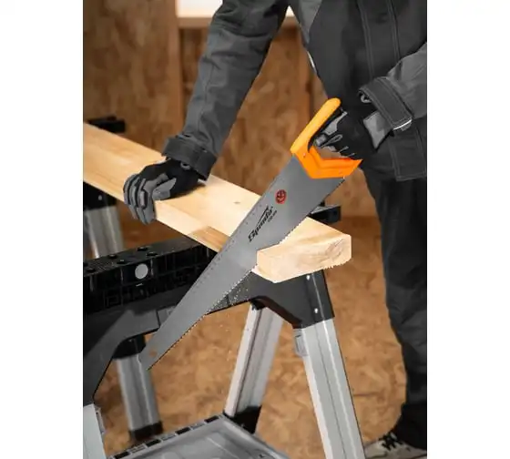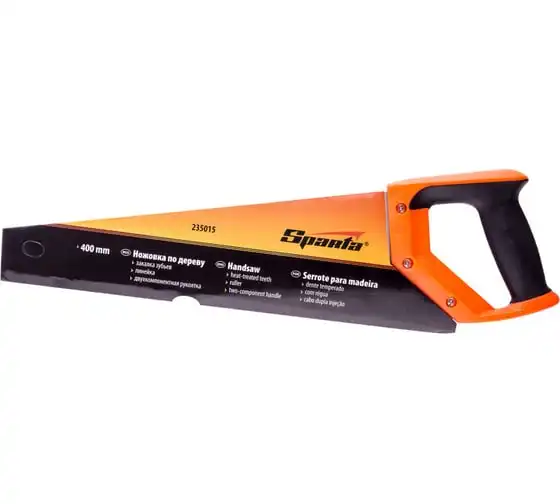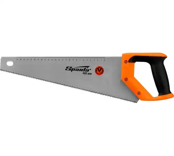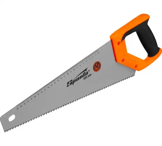 Ножовка по дереву SPARTA 400 мм, 7-8 TPI, зуб-2D, каленый зуб, линейка, двухкомпонентная рукоятка 235015