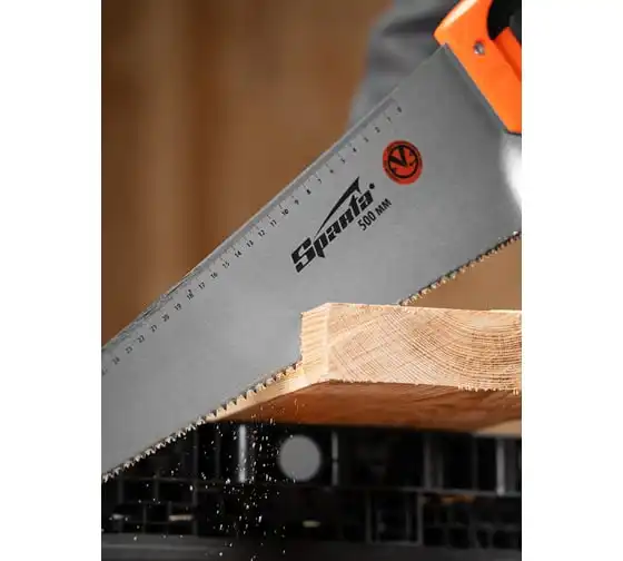 Ножовка SPARTA по дереву,500 мм,5-6 TPI, каленый зуб, линейка, пластиковая рукоятка// 232365