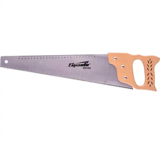 Ножовка по дереву SPARTA 450 мм, 5-6 TPI, каленый зуб, линейка, пластиковая рукоятка 232335