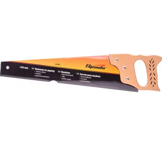 Ножовка SPARTA по дереву,450 мм,7-8 ТРI, каленый зуб, линейка, деревянная рукоятка// 231875