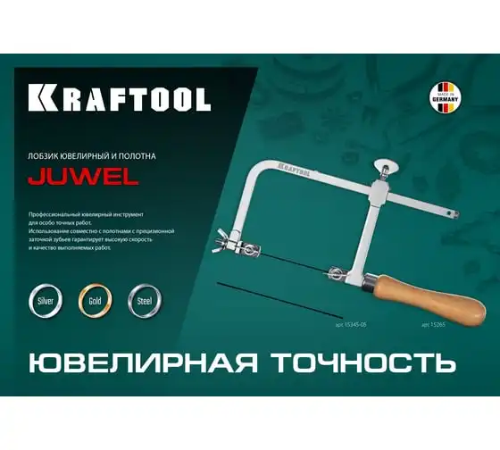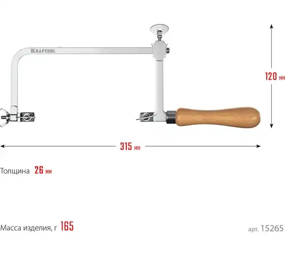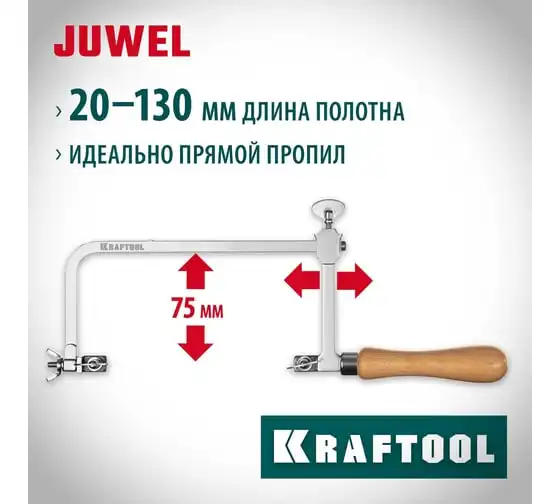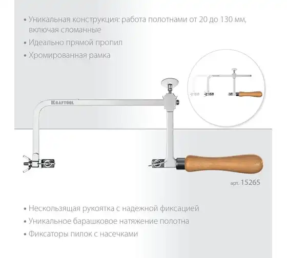 Ювелирный лобзик KRAFTOOL с регулируемой длиной полотна, 130x75 мм 15265
