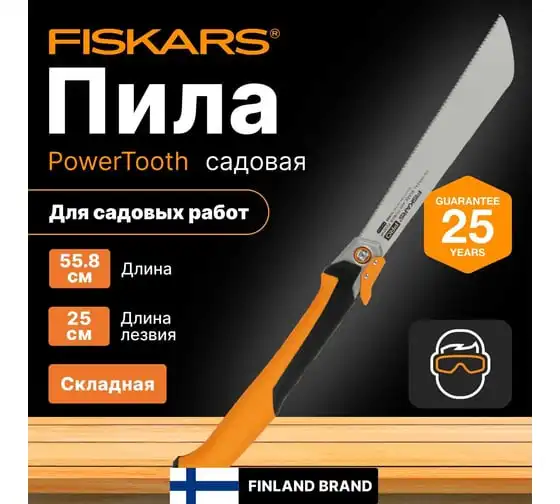 Универсальная складная пила FISKARS PowerTooth 150 мм, 2 лезвия 1062934