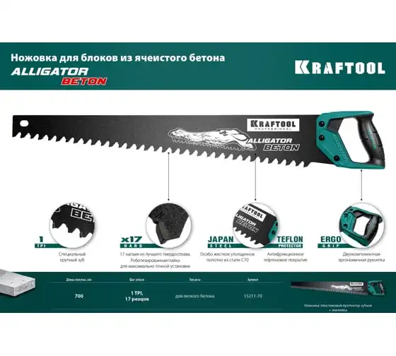 Ножовка по бетону KRAFTOOL Alligator Beton 700 мм 15211-70