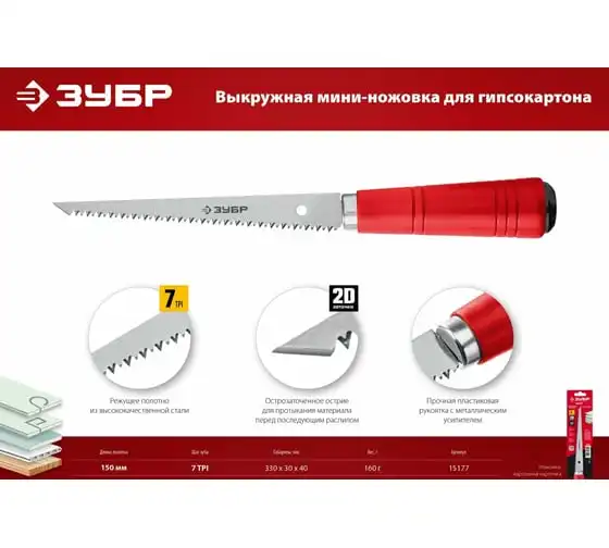 Выкружная мини-ножовка для гипсокартона ЗУБР 150 мм 15177