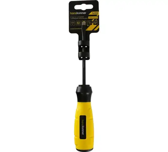 Шлицевая отвертка Hanskonner 5x100 алмазный наконечник, твердость 59 HRC, S2, HK1040-16-SL5-100