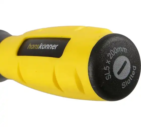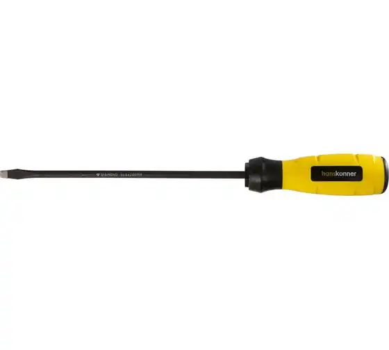 Шлицевая отвертка Hanskonner 5x200 алмазный наконечник, твердость 59 HRC, S2, HK1040-16-SL5-200