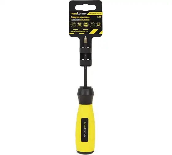 Крестовая отвертка Hanskonner 1x75 алмазный наконечник, твердость 59 HRC, S2, HK1040-16-PH1-75