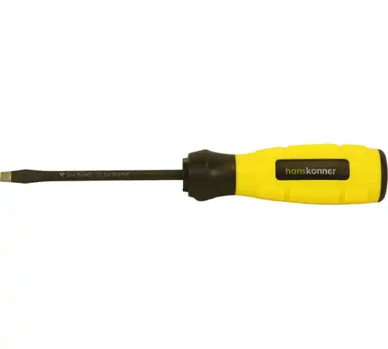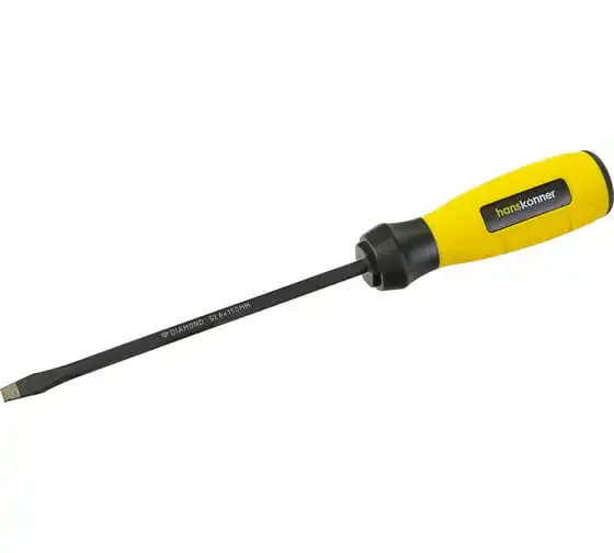 Шлицевая отвертка Hanskonner 6x150 алмазный наконечник, твердость 59 HRC, S2, HK1040-16-SL6-150