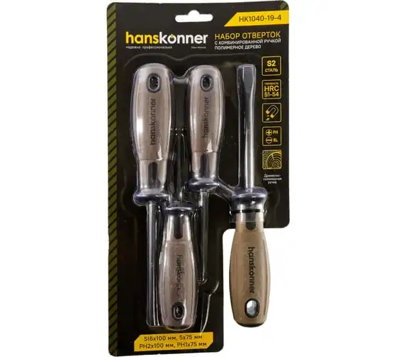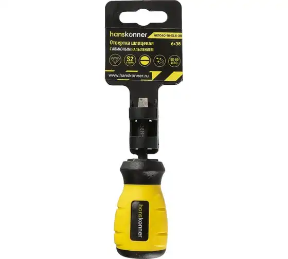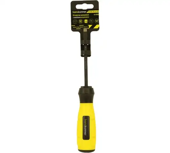Шлицевая отвертка Hanskonner 6x100 алмазный наконечник, твердость 59 HRC, S2, HK1040-16-SL6-100