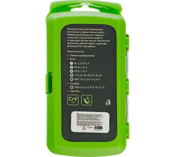 Отвертка реверсивная + биты СИБРТЕХ 41 пред., PH+PZ+SL+H+T, CrV, 2к рукоятка 133587