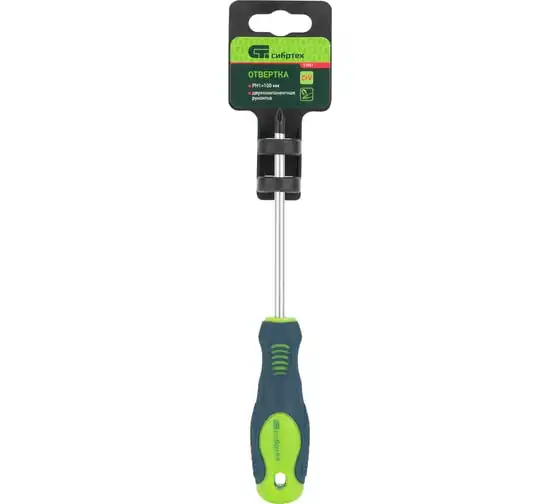 Отвертка СИБРТЕХ Pz2x100 мм, CrV, 2-х компонентная рукоятка 11879