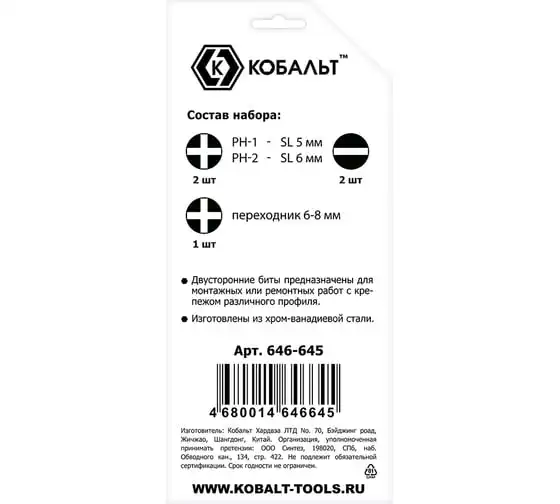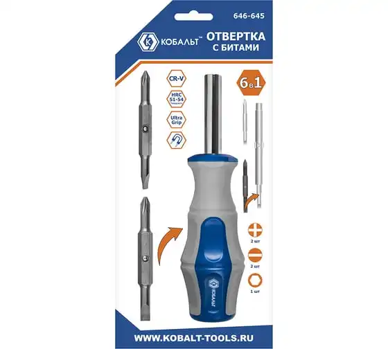 Отверточная рукоятка Ultra Grip с набором двусторонних бит КОБАЛЬТ 646-645