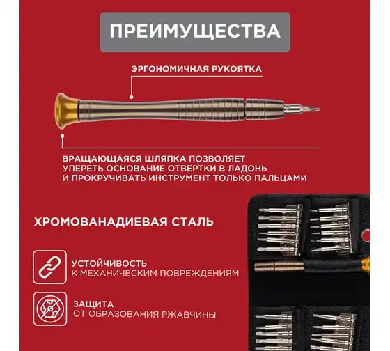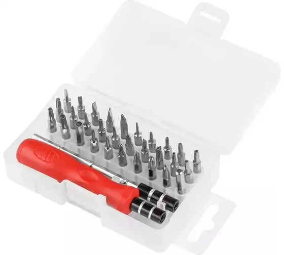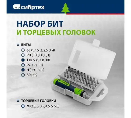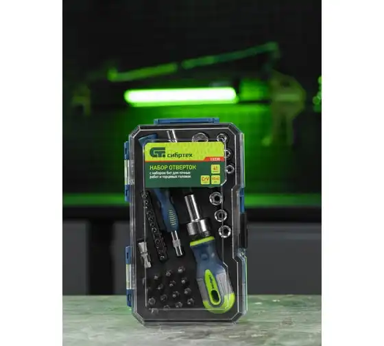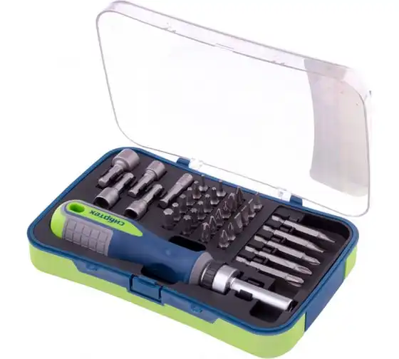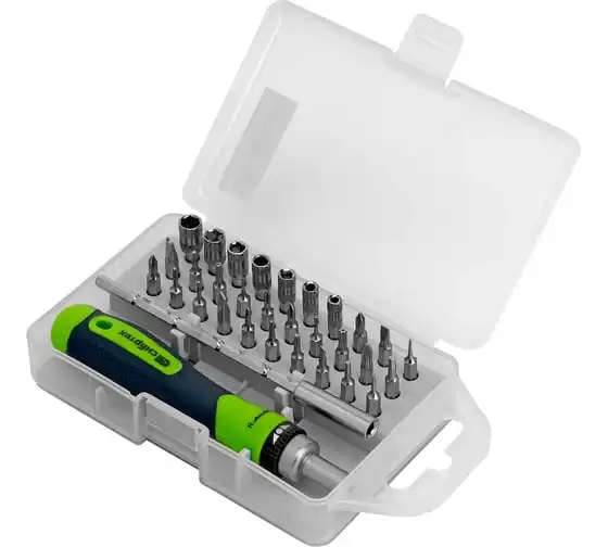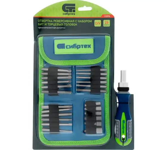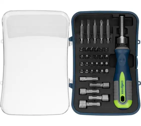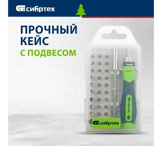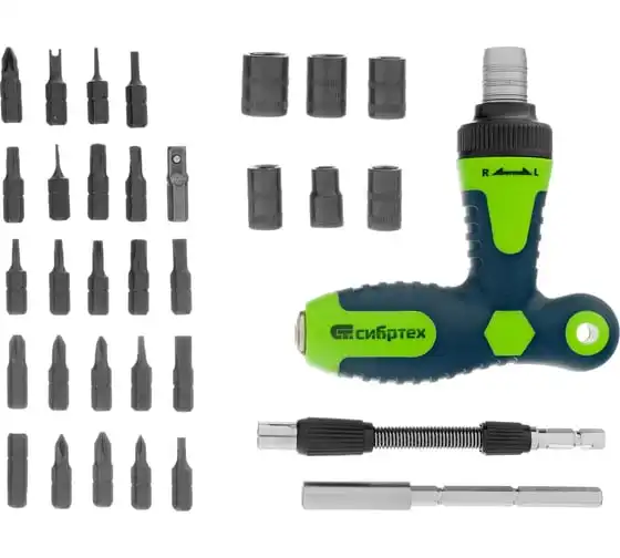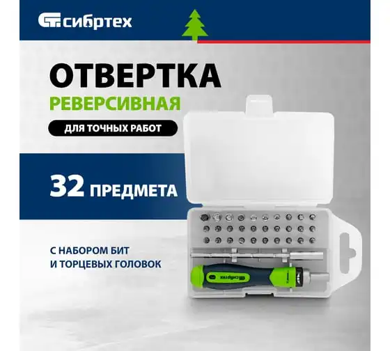 Реверсивная отвертка для точных работ с набором бит и торцевых головок СИБРТЕХ 32 предмета 13370