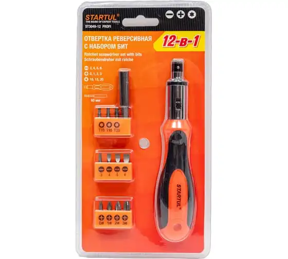 Реверсивная отвертка с набором бит STARTUL 12 предметов ST3049-12