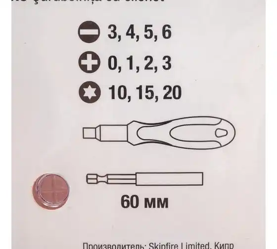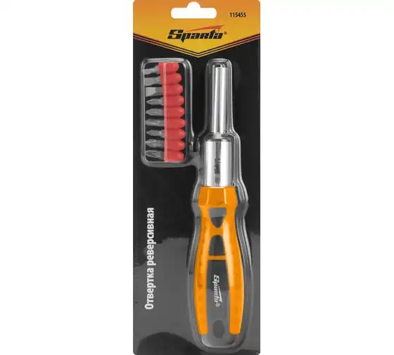 Реверсивная отвертка с набором бит 9 шт SPARTA CrV 115455