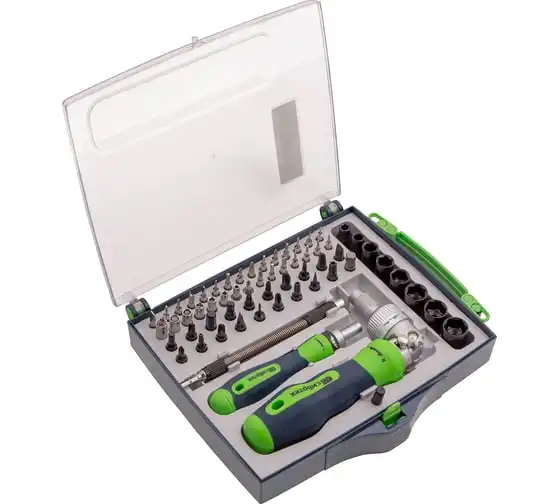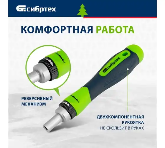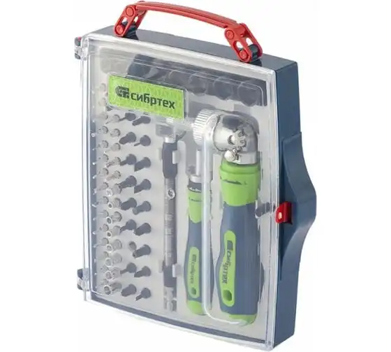 Реверсивные отвертки с набором бит СИБРТЕХ торцевых головок, 61 предм.,CrV// 13363