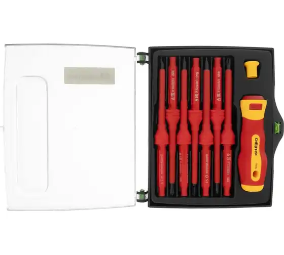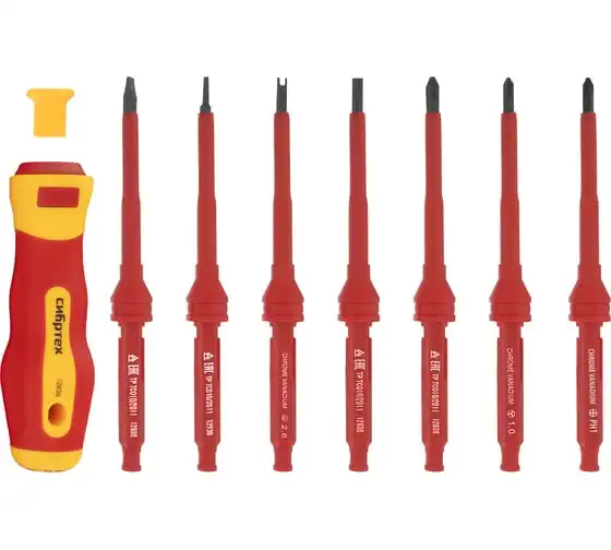 Диэлектрическая отвертка со сменными жалами СИБРТЕХ до 1000В 9 предметов CrV 12938