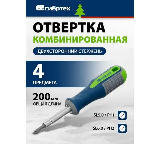 Комбинированная отвертка SL5.0 / Ph1, SL6.0 / Ph2 СИБРТЕХ 13377